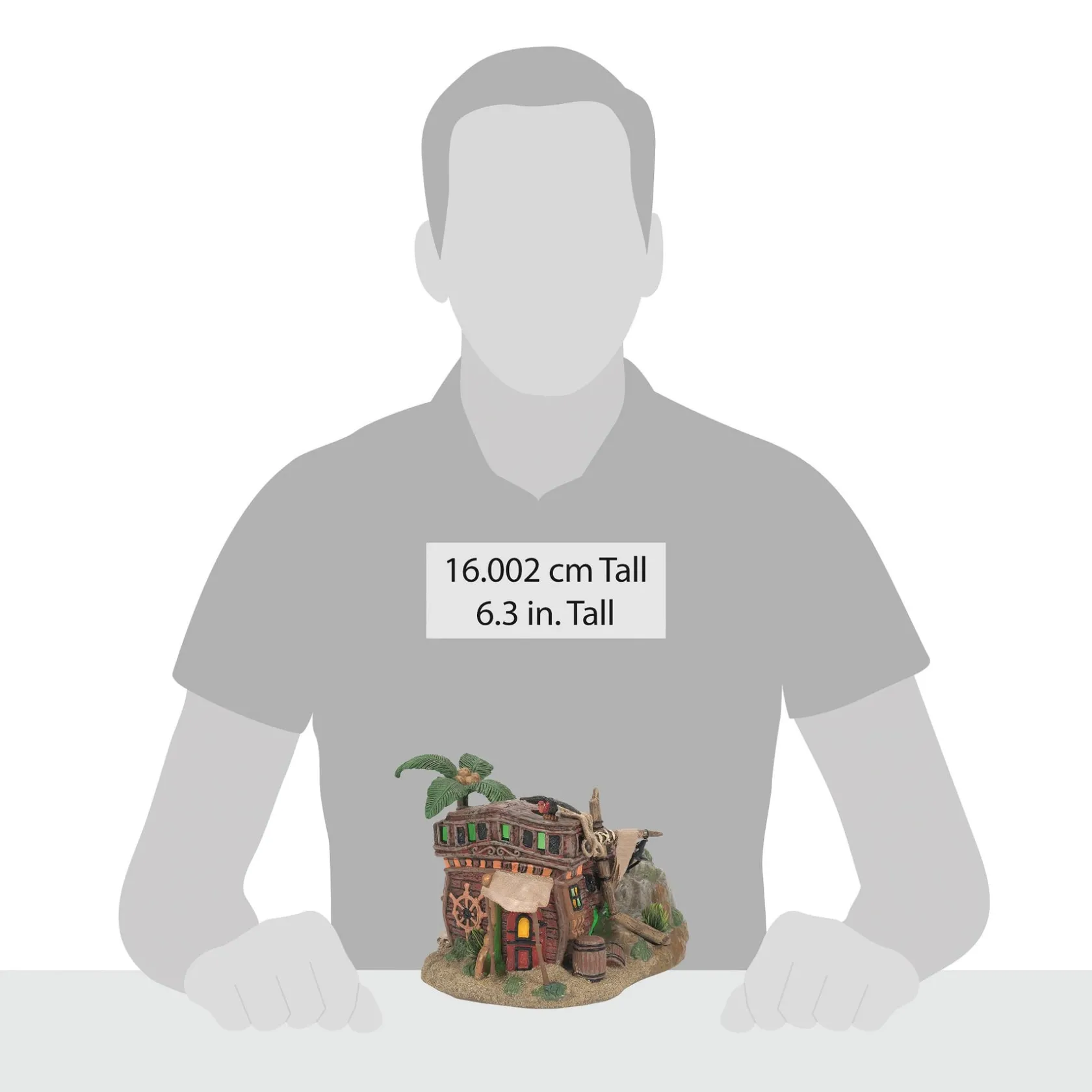 Built from a shipwrecked boat, “Pirate Haven Hideaway” will make everyone who sees it say Arrgh! Details include a base of a sandy beach and a palm tree.
