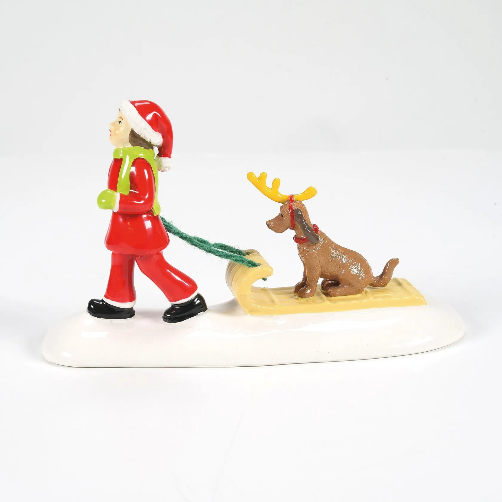 This little girl is ready to play outside The Grinch House and pretend her dog is Max.
