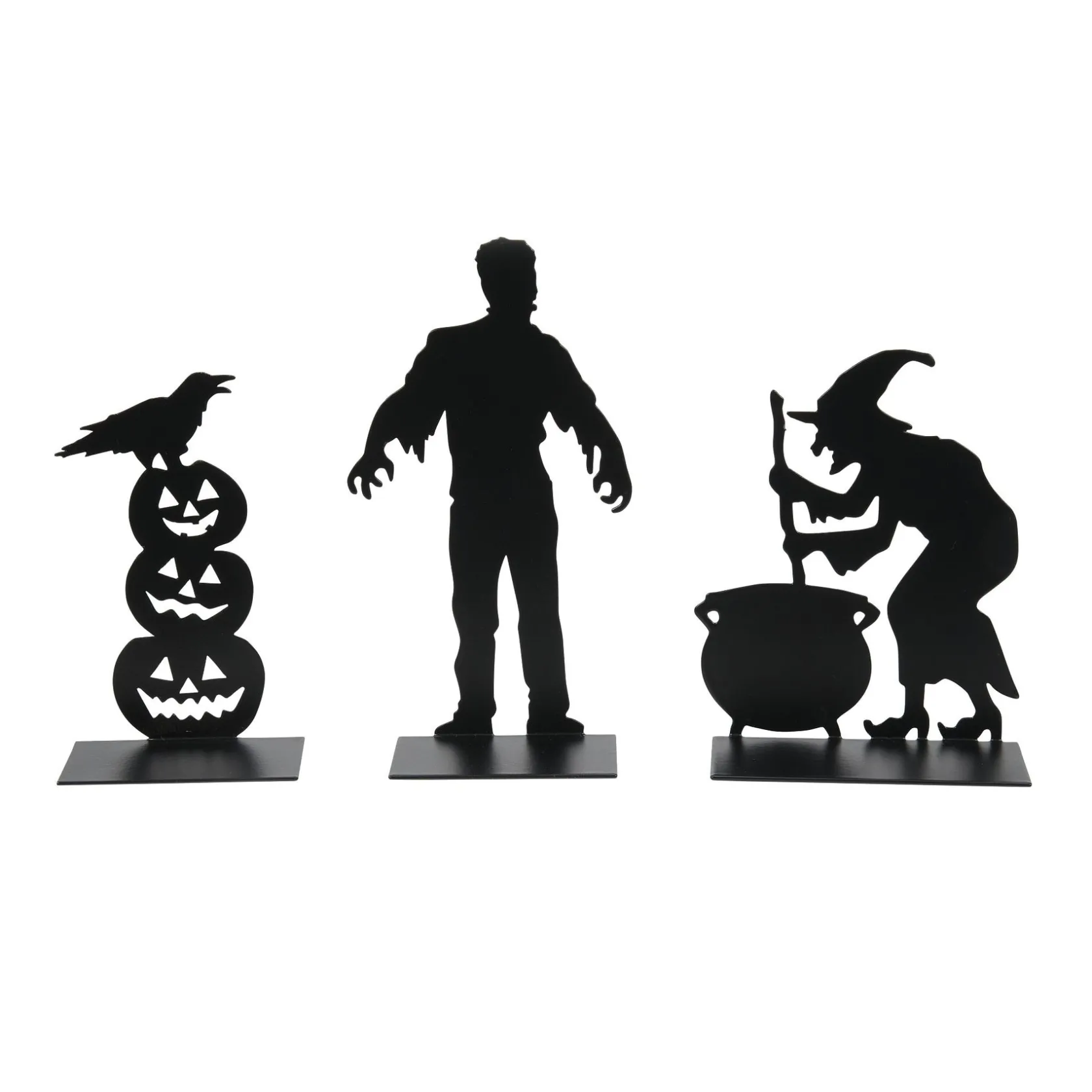 What do the monster, the witch and the pile of pumpkins have in common? They are all matte black metal silhouettes ready to place on the front lawn of any of your Halloween Village houses. They are the “Spooky Silhouettes.”