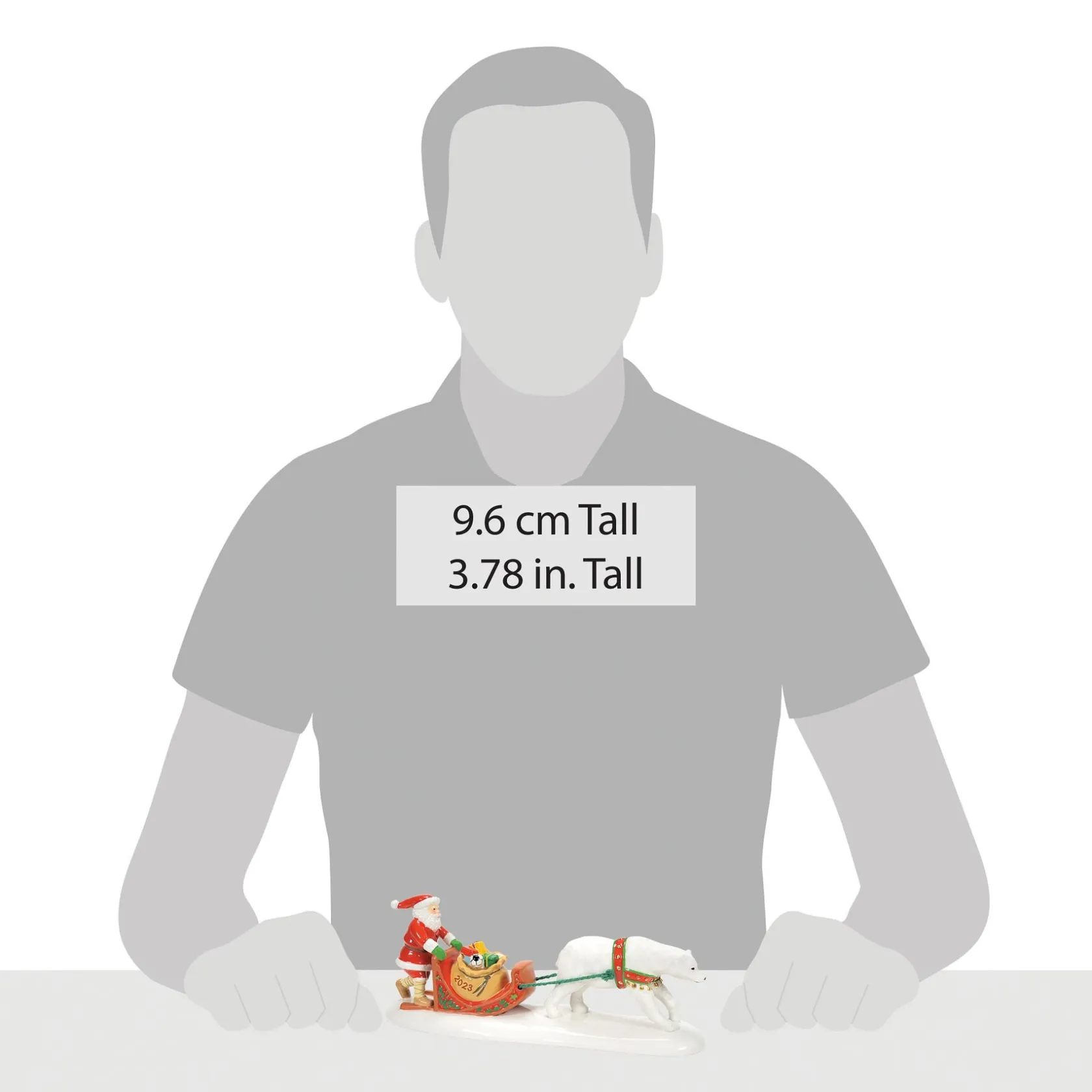 Santa returns to his Nordic roots with a sleigh being pulled by a friendly polar bear. This is the annual dated Original Snow Village accessory for 2023. The date appears on Santa’s very full sack of presents.