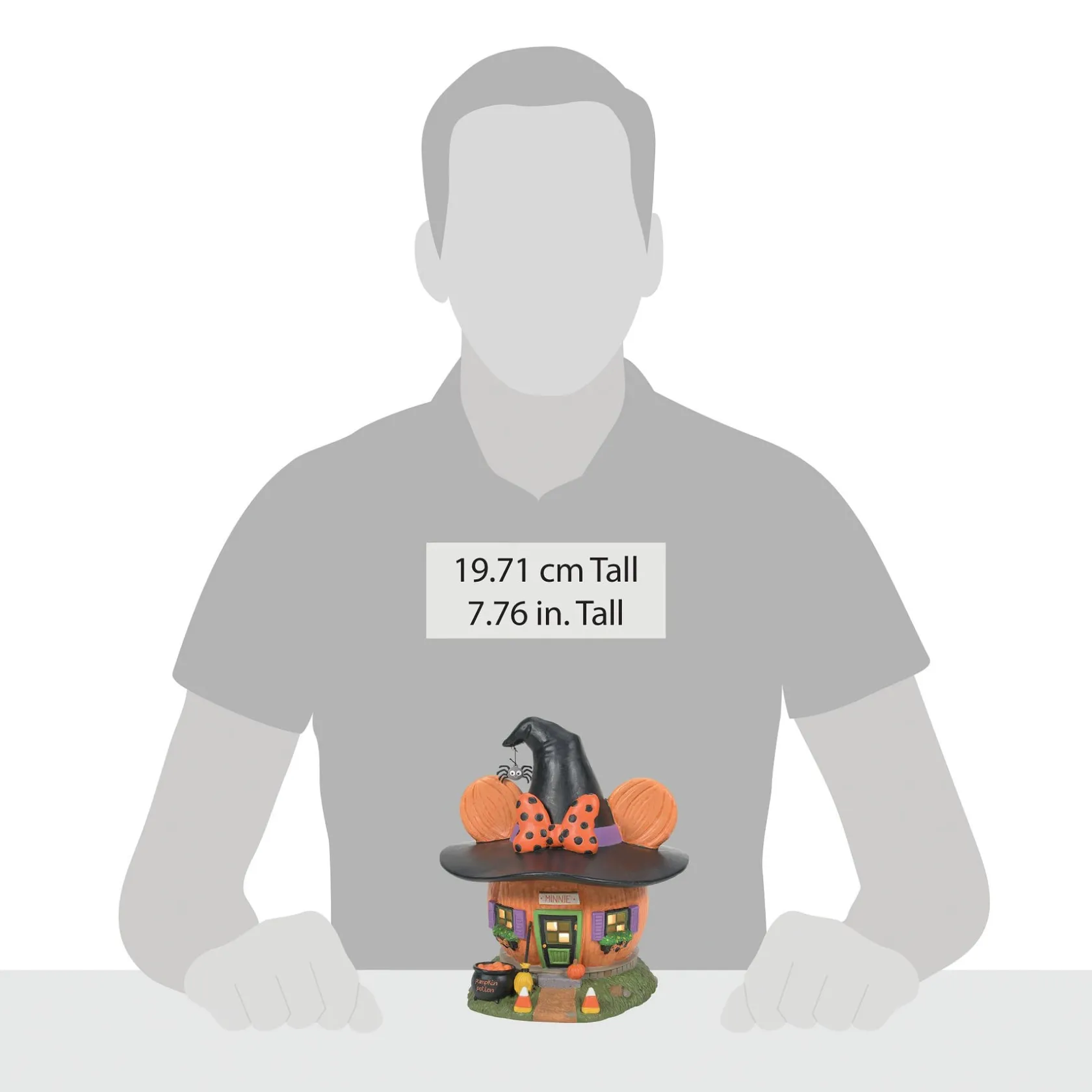 Wearing a jaunty witch’s hat and her signature polka-dotted bow, Minnie’s Pumpkin Town House is ready for the season! There is a cauldron of witch’s brew, candy corn, a witch’s broom and pumpkins on the doorstep.