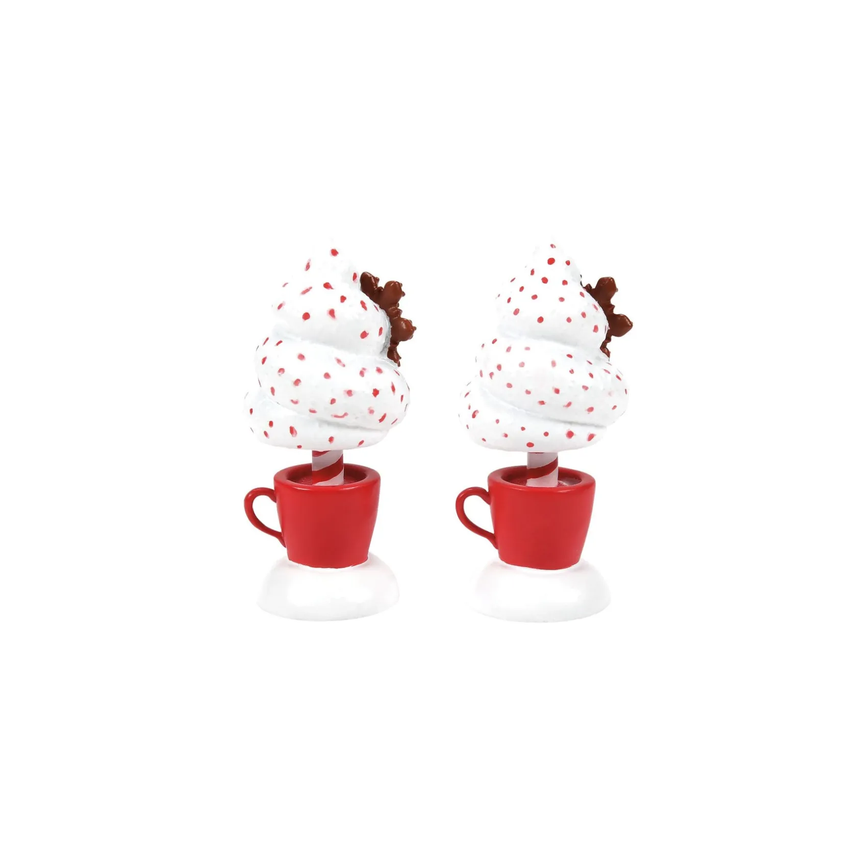 Towering clouds of whipped cream topped with crushed peppermint candies create tempting topiaries for your sweetest displays.