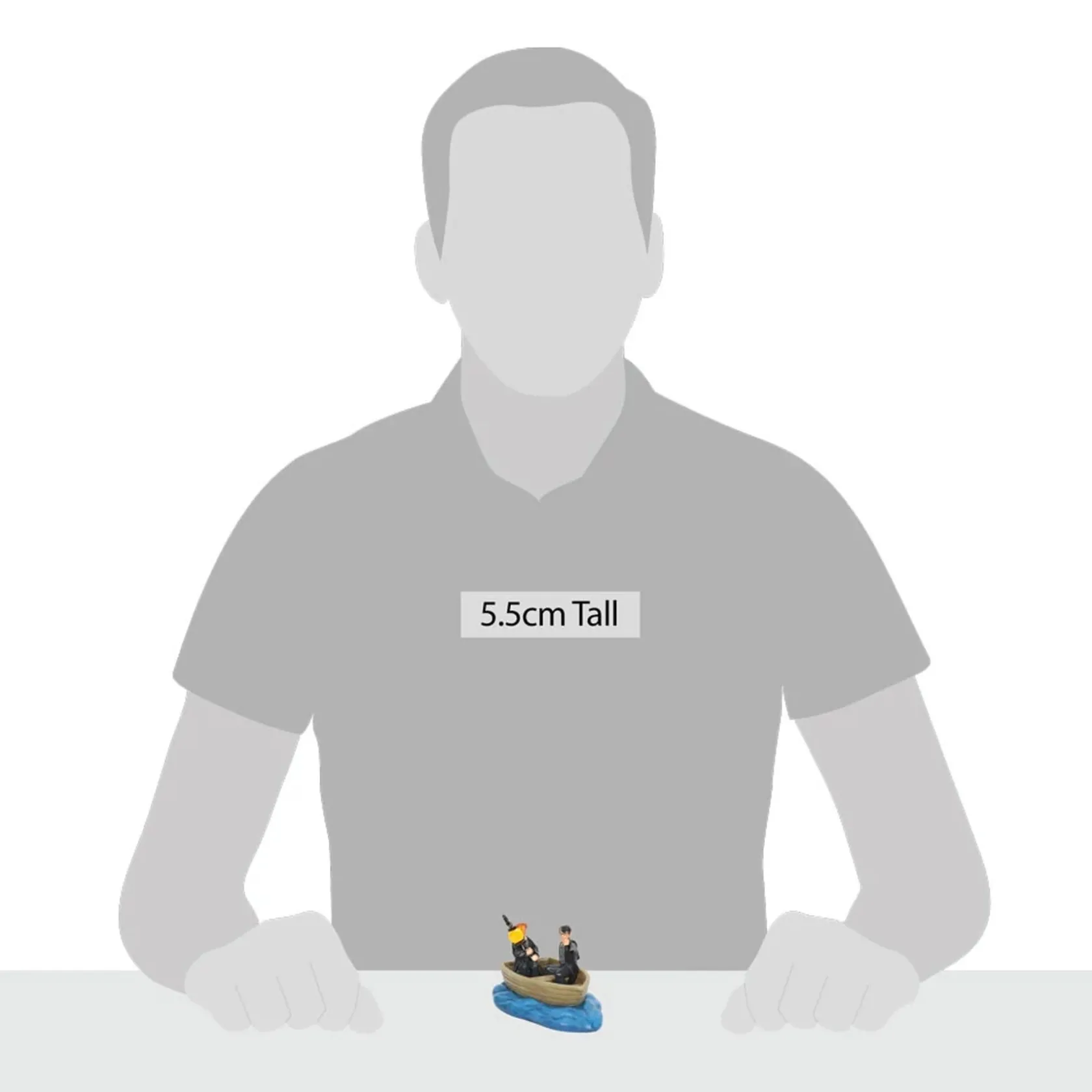 Riding in a small wooden dinghy, Harry and Ron as first year students find their way to Hogwarts. The lantern is LED lit and is battery operated, it can be converted to AC power using 56.55026.