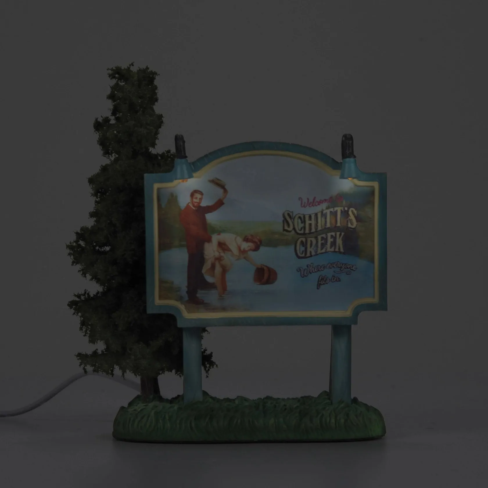 It’s okay, it’s his sister! The infamous billboard that welcomes everyone to Schitt’s Creek is captured in amazing detail by our Department 56 artists. LED LIT Billboard!