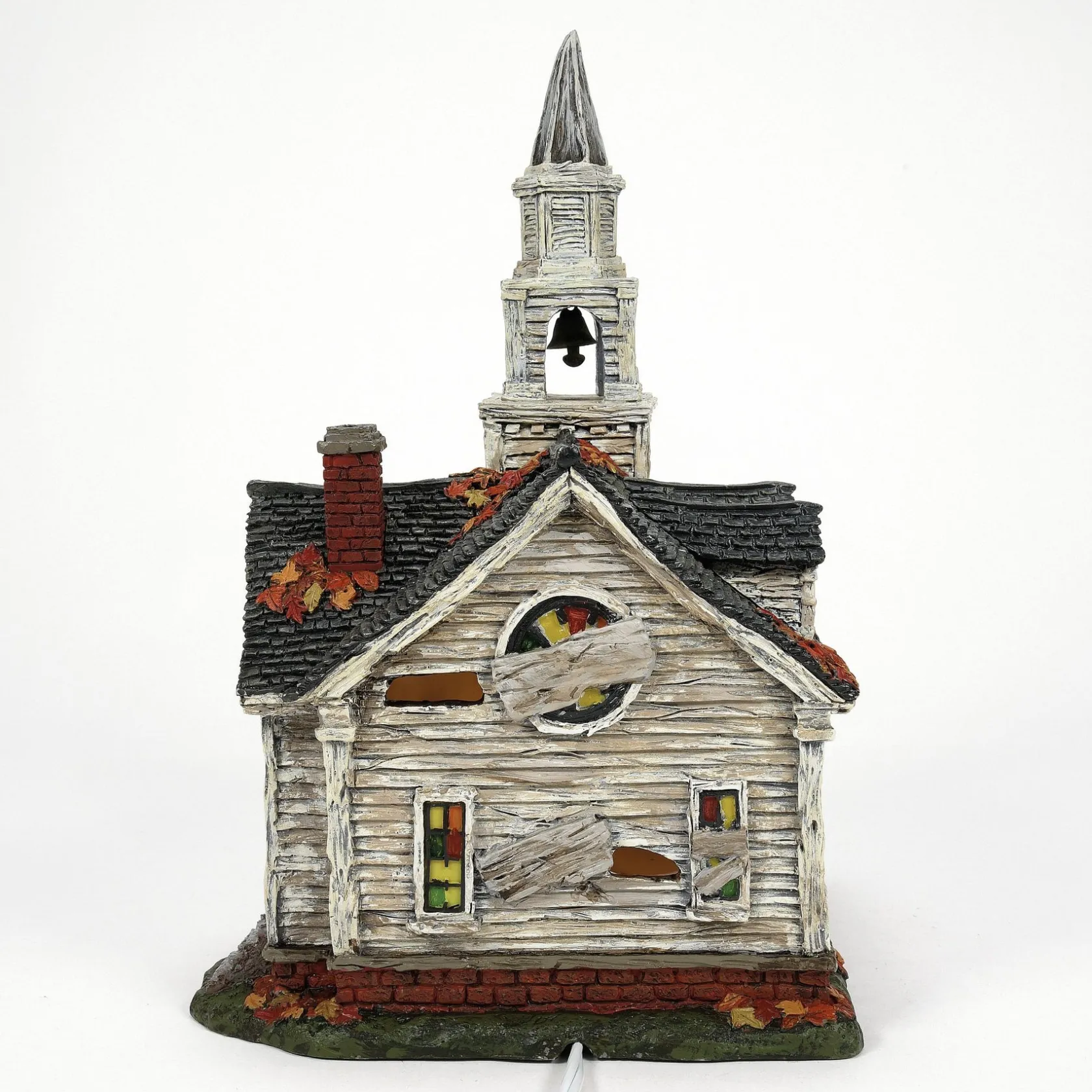 In honor of the film Elvira, Mistress of the Dark, our D56 artists have reimagined the abandoned Church in the little village of Fallwell, MA where Elvira was nearly barbequed by an angry mob of torch-wielding townspeople!
