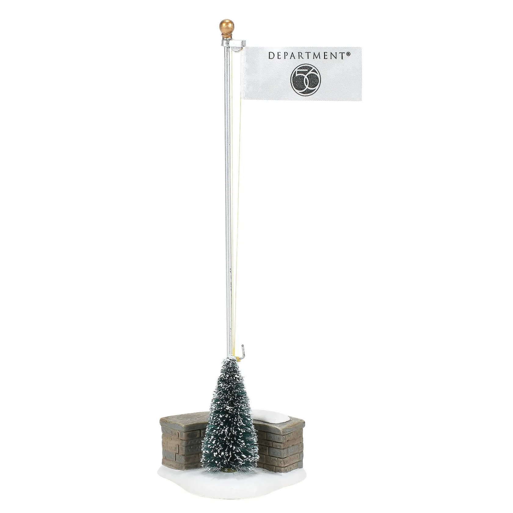 Now everyone can have an exact replica of the Department 56 corporate flag to fly over their own Village display. The base is made of porcelain with an attached sisal tree and is hand painted.