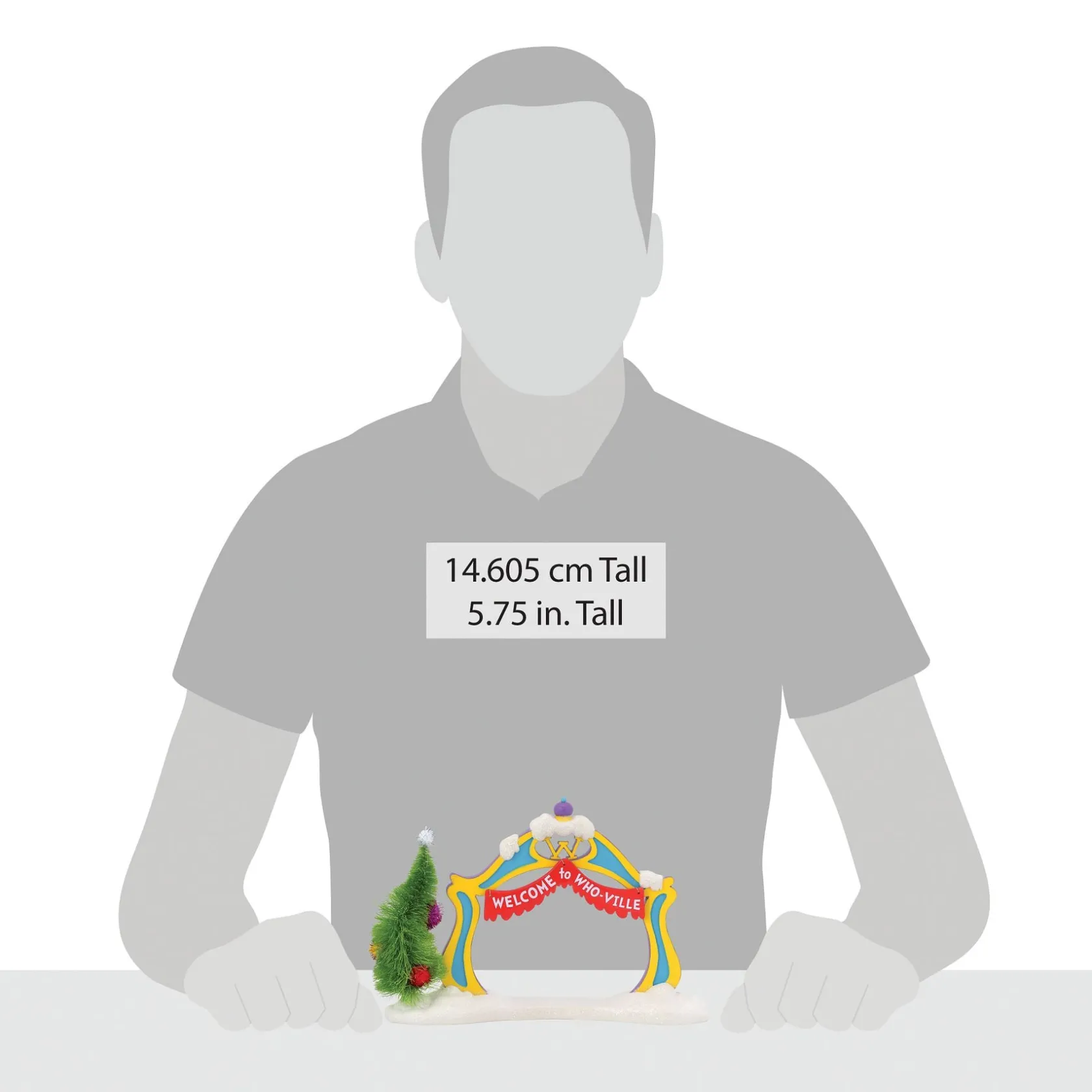 As a very friendly town, the residents of Who-ville put up a welcoming banner on the archway to the town. The resin piece is hand painted in bright Who-ville colors.