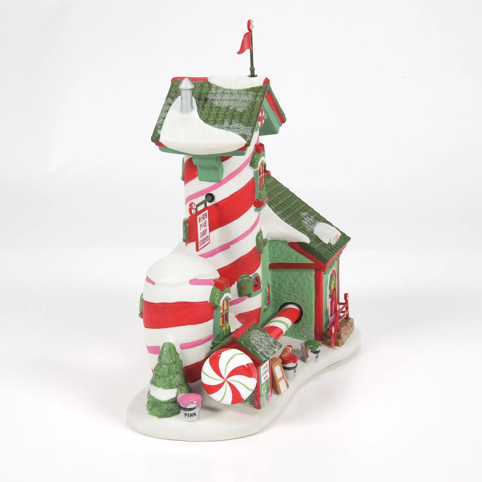 If you have ever wondered how candy canes get their stripes, this whimsical factory at the North Pole reveals the trade secrets.The tiny stool in front offers industrious elves the chance to add creative stripes to a freshly made rotating candy stick.