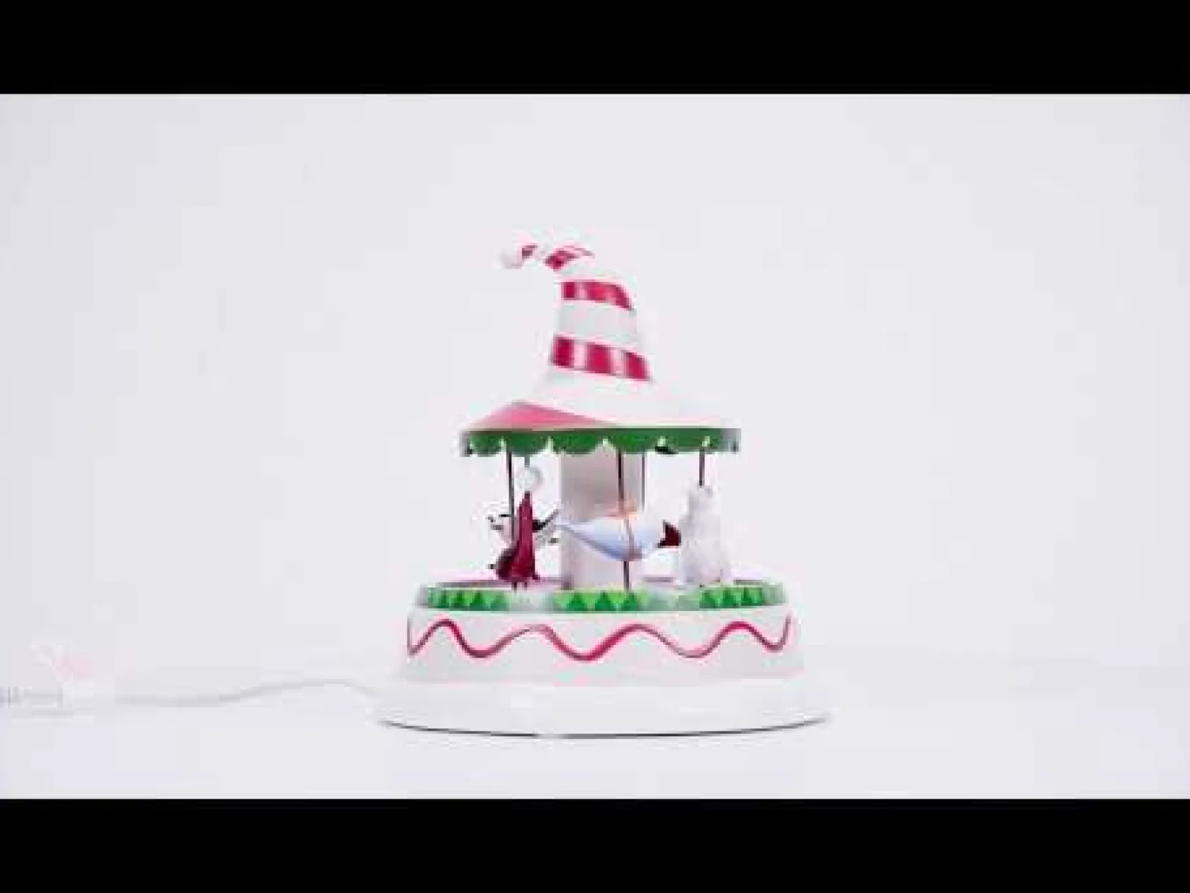 The carousel makes the children of “Christmas Town” very happy. There is a penguin, a walrus, a polar bear, a seal & a whale. This animated piece comes with its own power adapter for movement. There are not lights on this item.