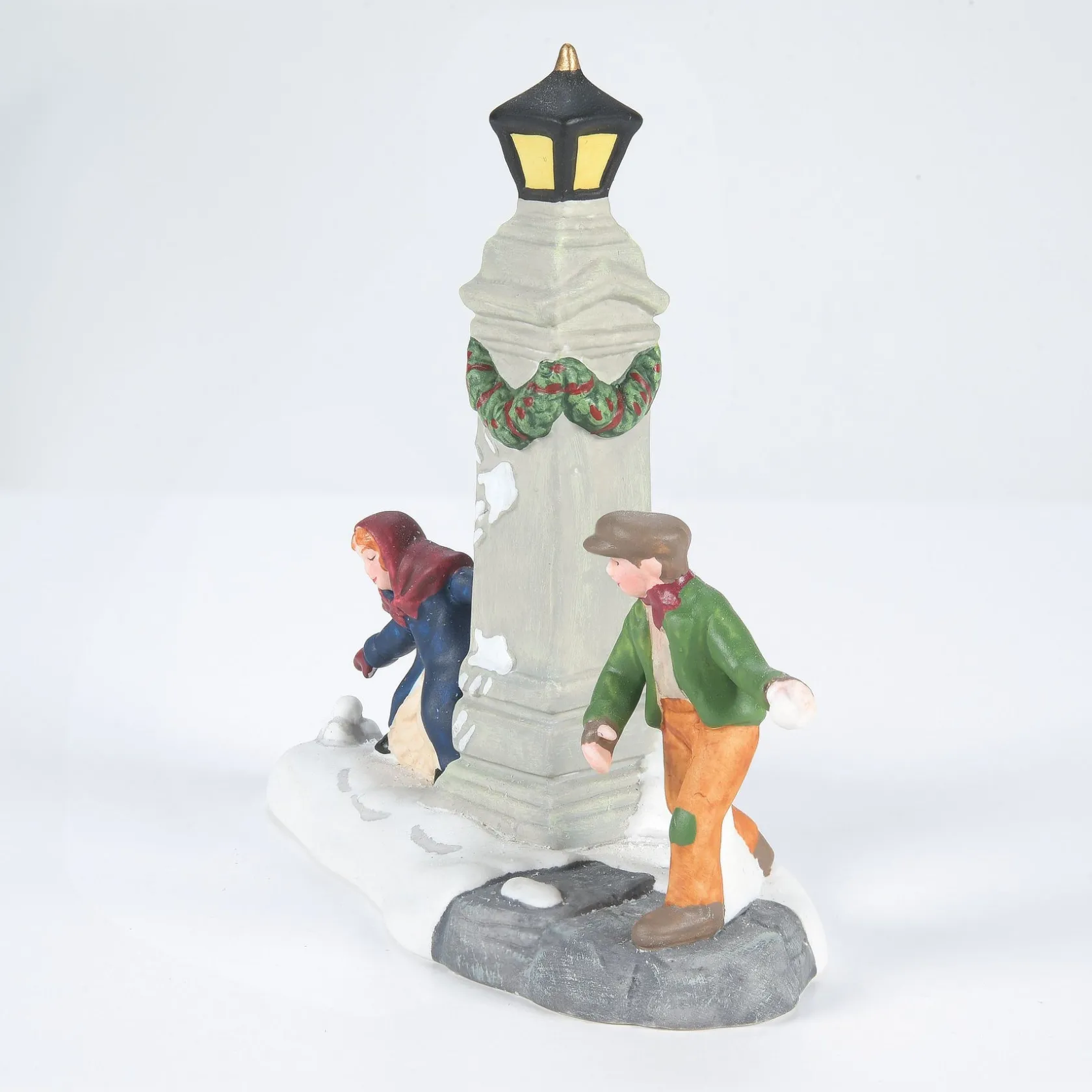 Fun filled Village accessory depicting the fun of a recent snow fall.Hand painted porcelain.